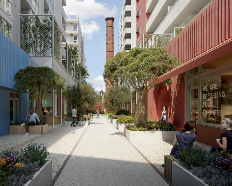 The project is centred around the historic Australian Licorice Factory chimney, a recognised heritage landmark of state significance, which proudly stands as a reminder of Brunswick’s early industrial character.